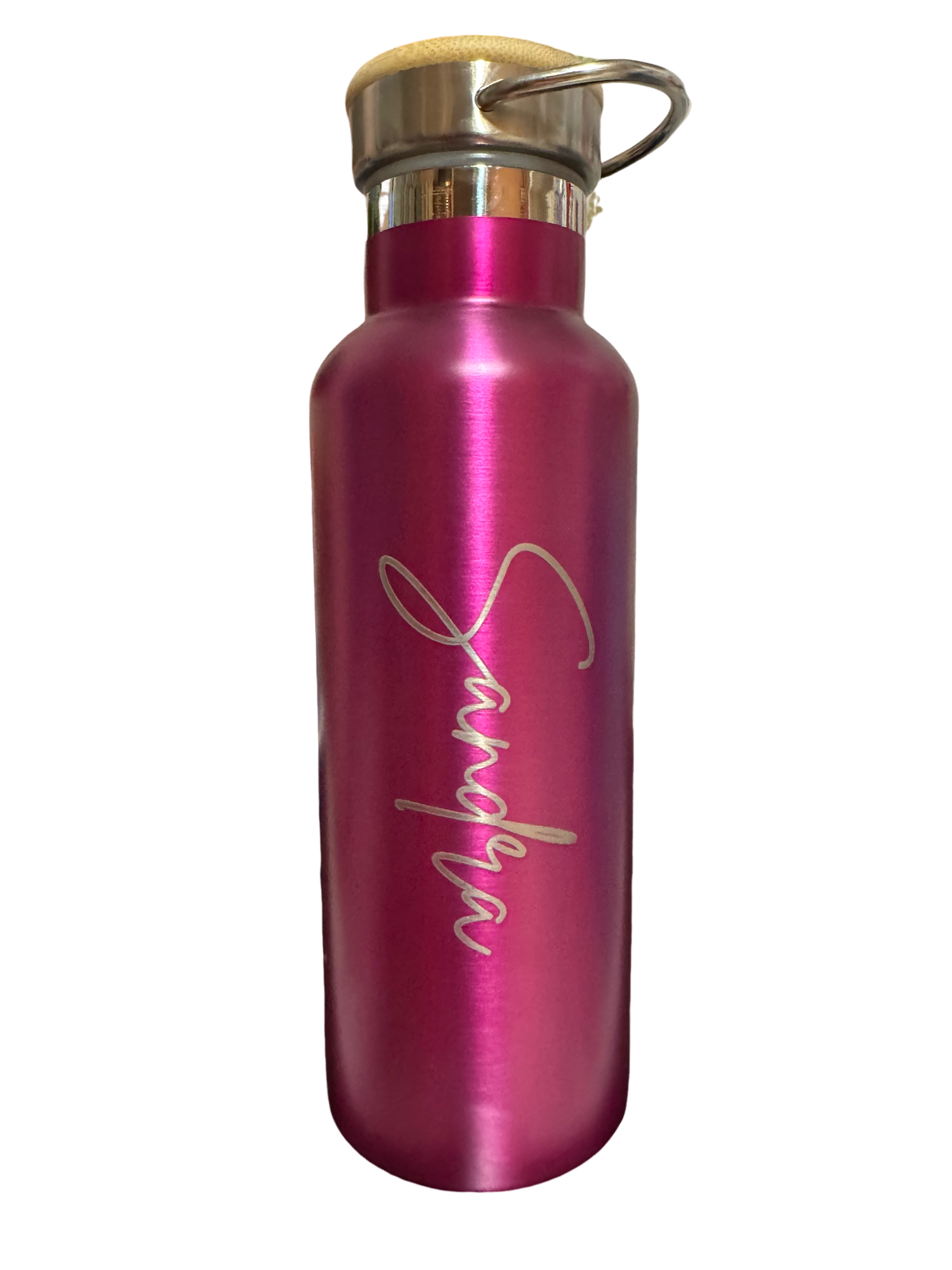 Incluye tapón a rosca en acero inox, con detalle de bambú y asa integrada